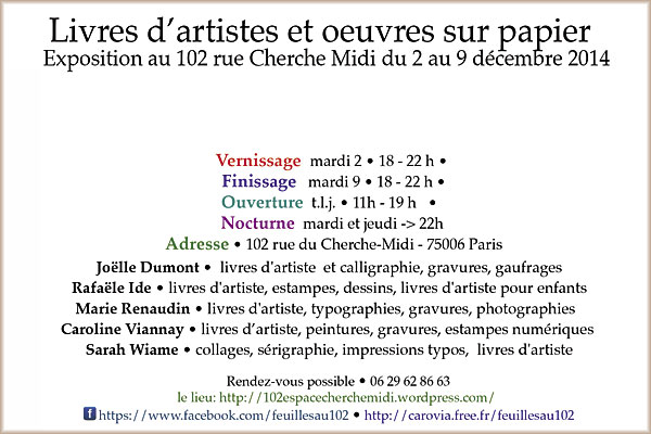 Vernissage le mardi 2 décembre 2014 à partir de 18h00
