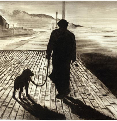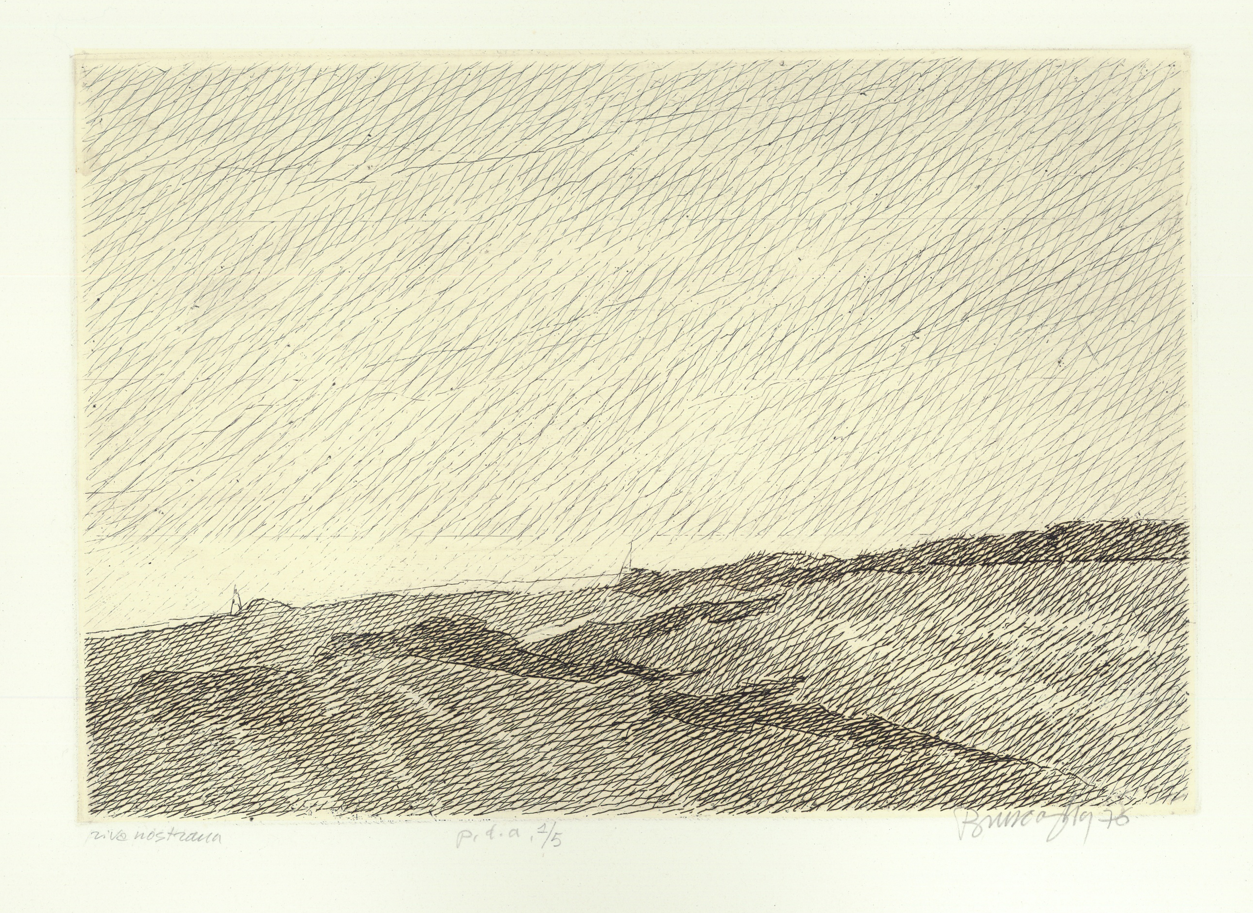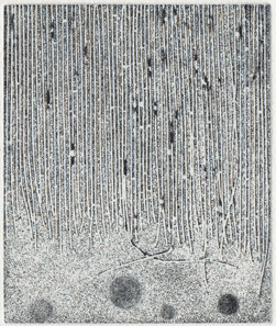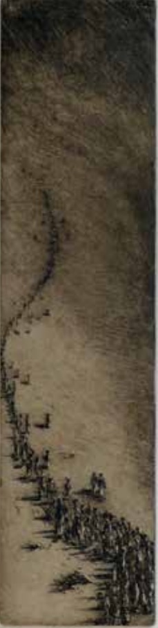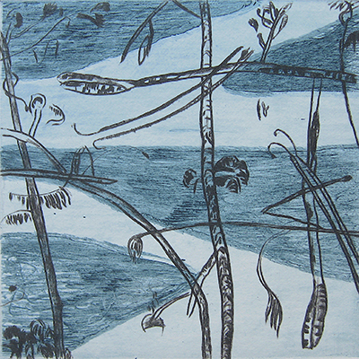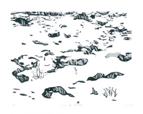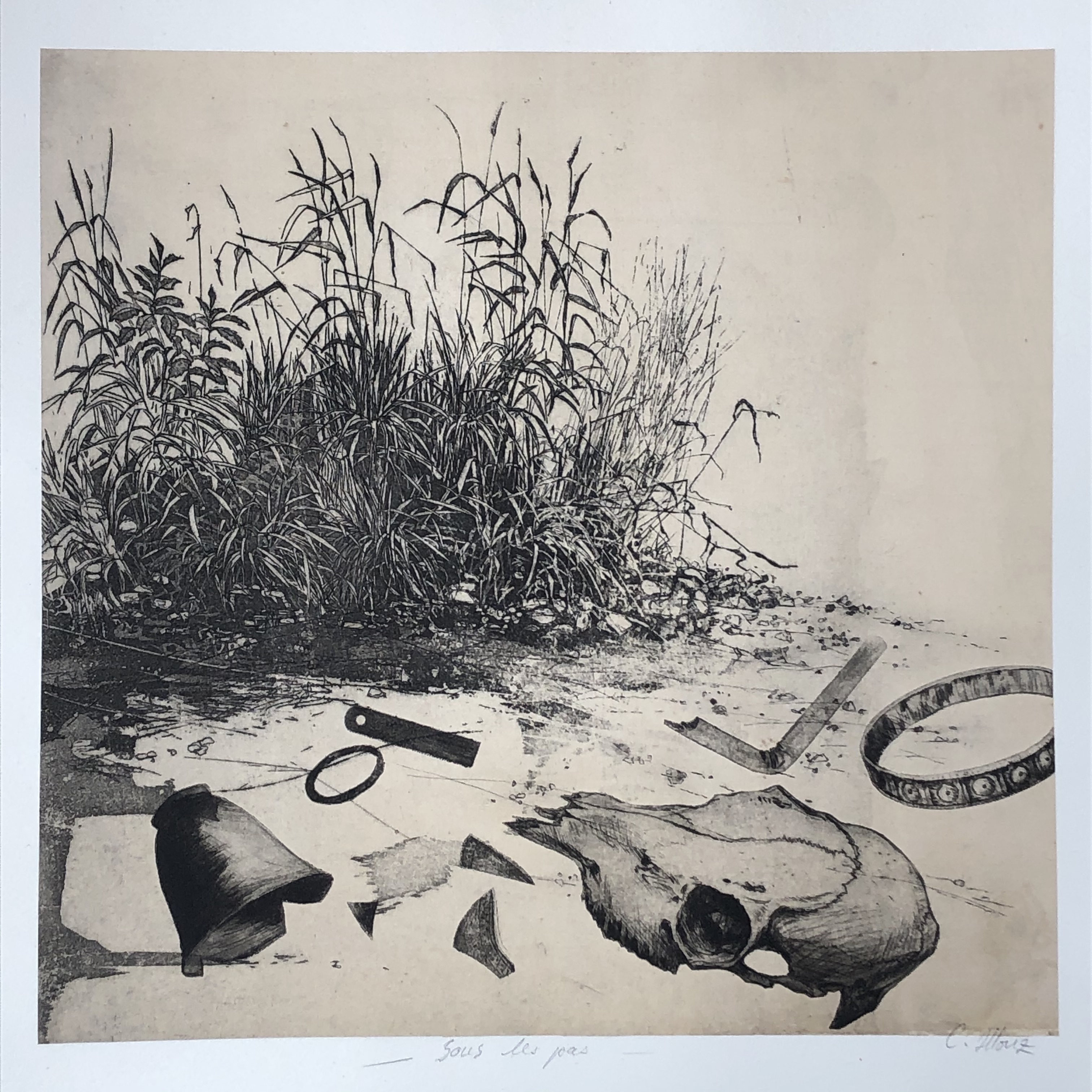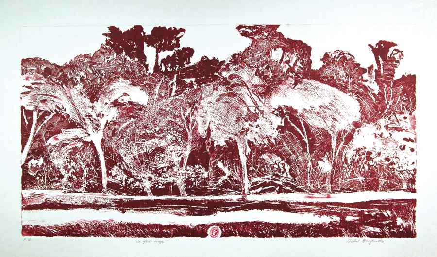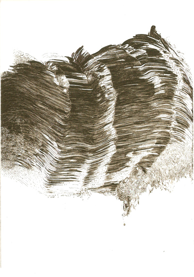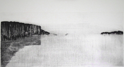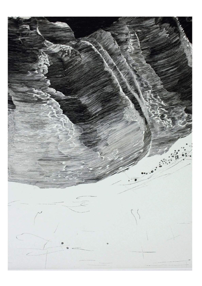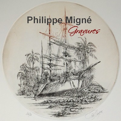 Dans ses itinéraires imaginaires Philippe Migné prévoit toujours une petite halte dans ce paysage familier qu’il a si souvent eu le plaisir d’explorer. Avant même de commencer la gravure, déjà le sable portait les empreintes de ses voyages...