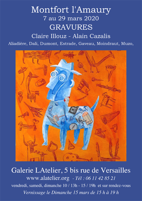 Exposition des estampes de Claire Illouz, Alain Cazalis ainsi que les estampes de Aliadière, Dali, Dumont, Estrade, CaveaExposition des estampes de Claire Illouz, Alain Cazalis ainsi que les estampes de Aliadière, Dali, Dumont, Estrade, Caveau, Moindraut, Muzo., Moindraut, Muzo. Exposants Claire...