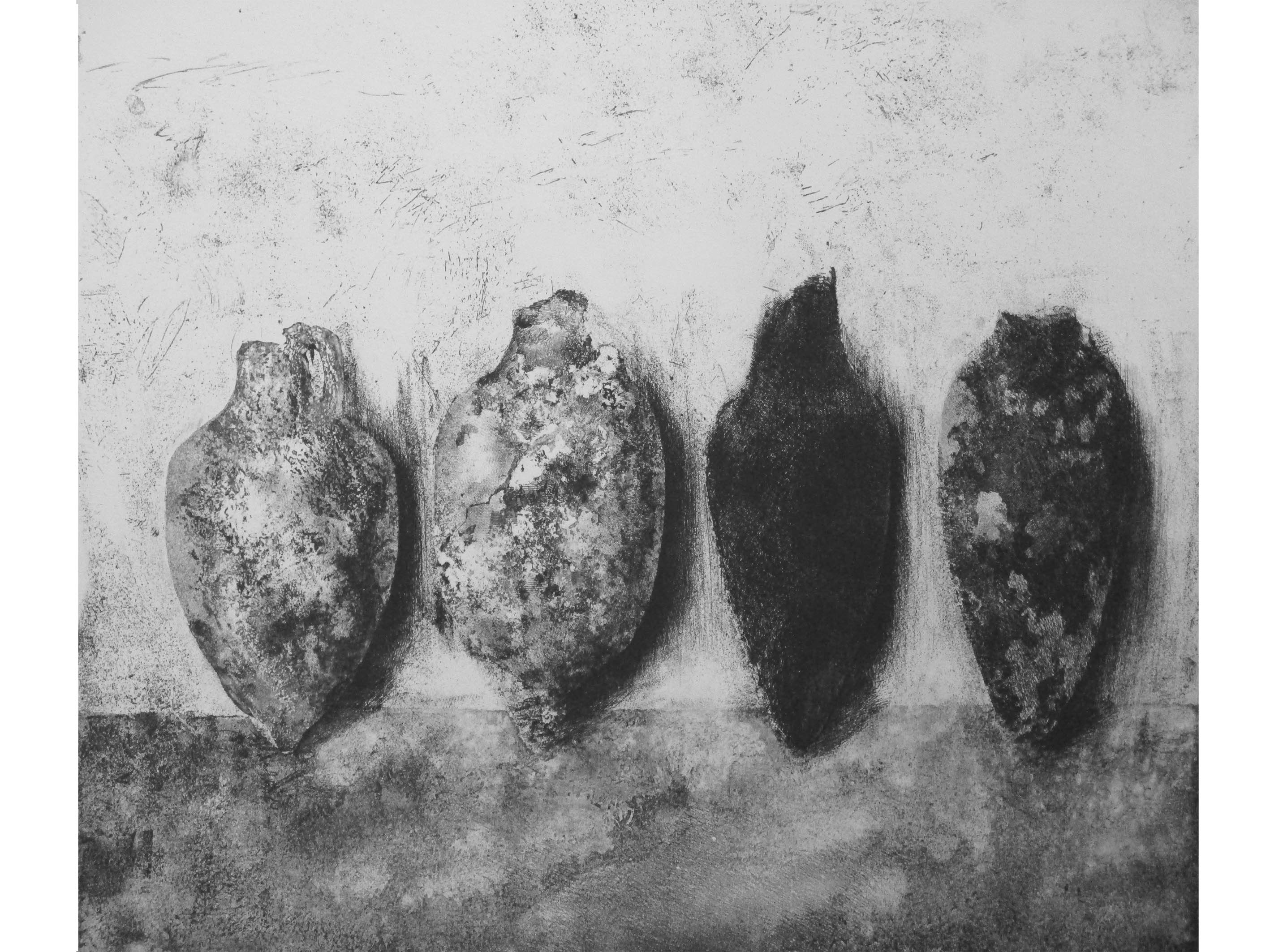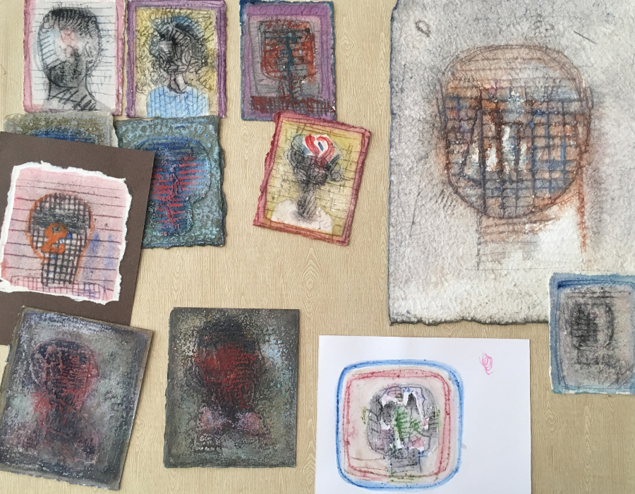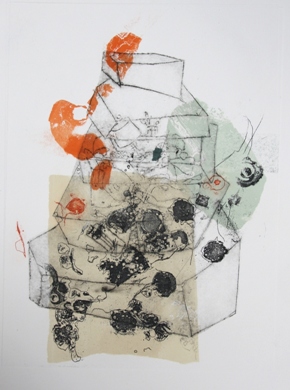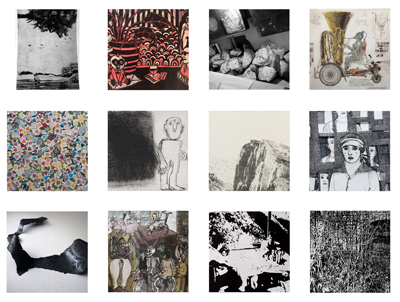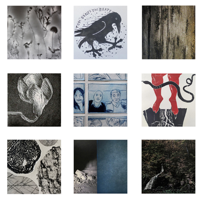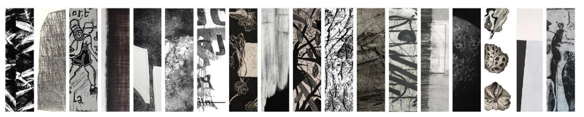 Présentation d'un ensemble de lithographies, kitchen litho, monotypes et gravures. Exposants Noëlle Prinz