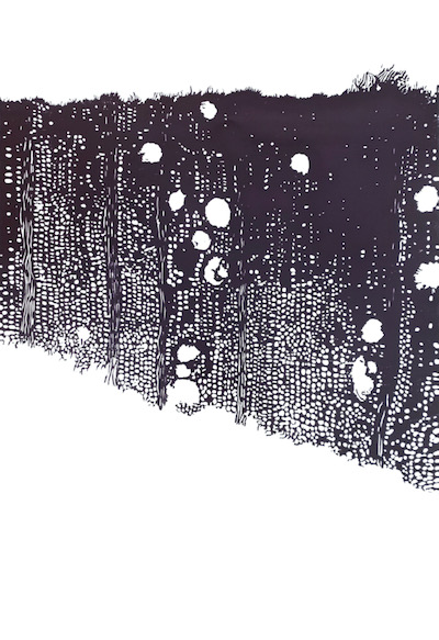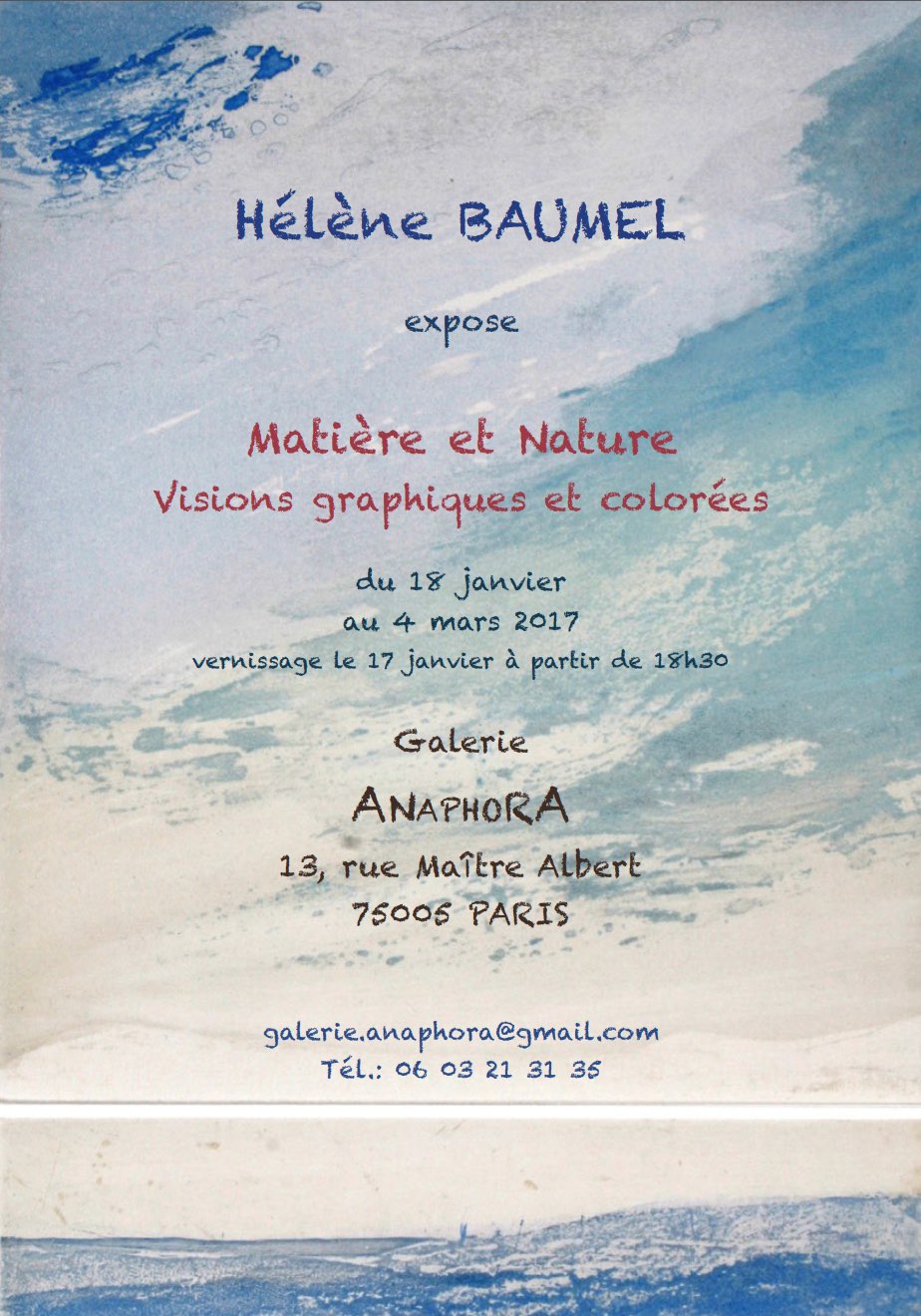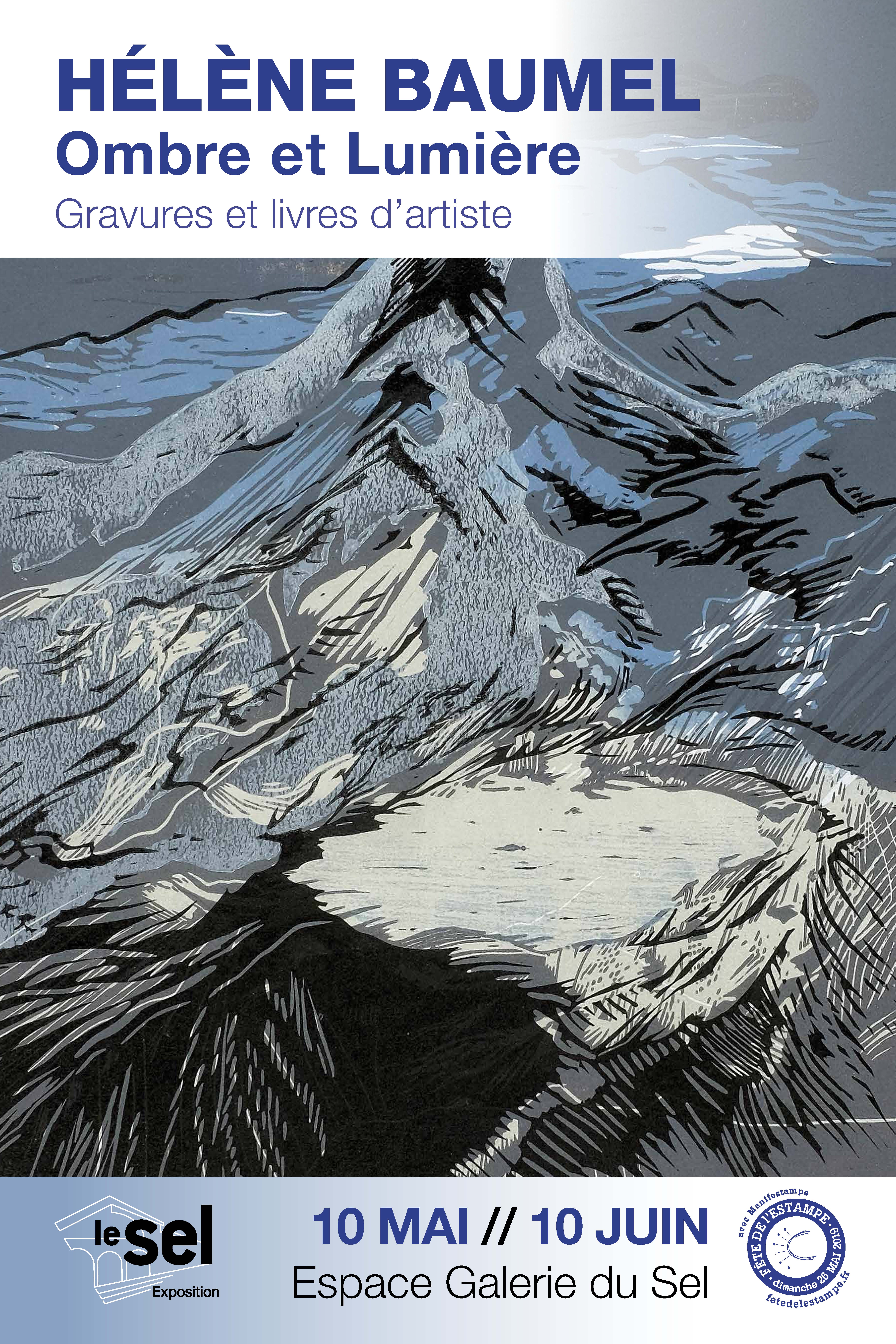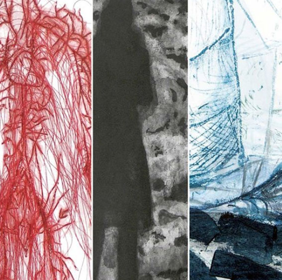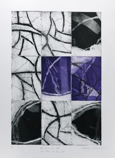 Des linogravures graphiques aux contrastes absolus se mêlent aux peintures de l'artiste liée au médium noir d'ivoire et aux plis.Dernièrement une nouvelle cosmogonie apparaît en couleur. Exposants Sylvianne Abrias Murat et Héléna...