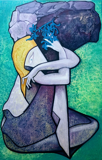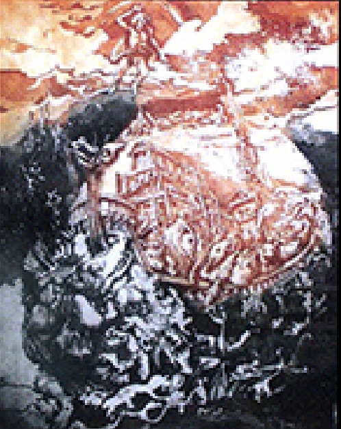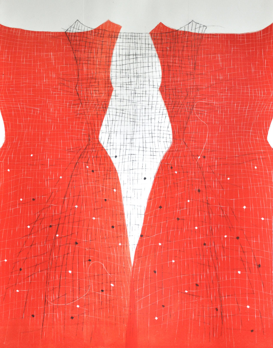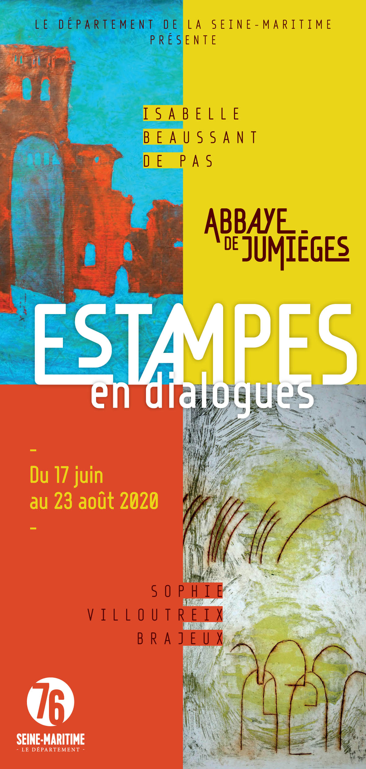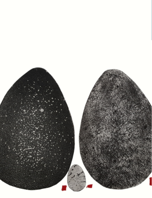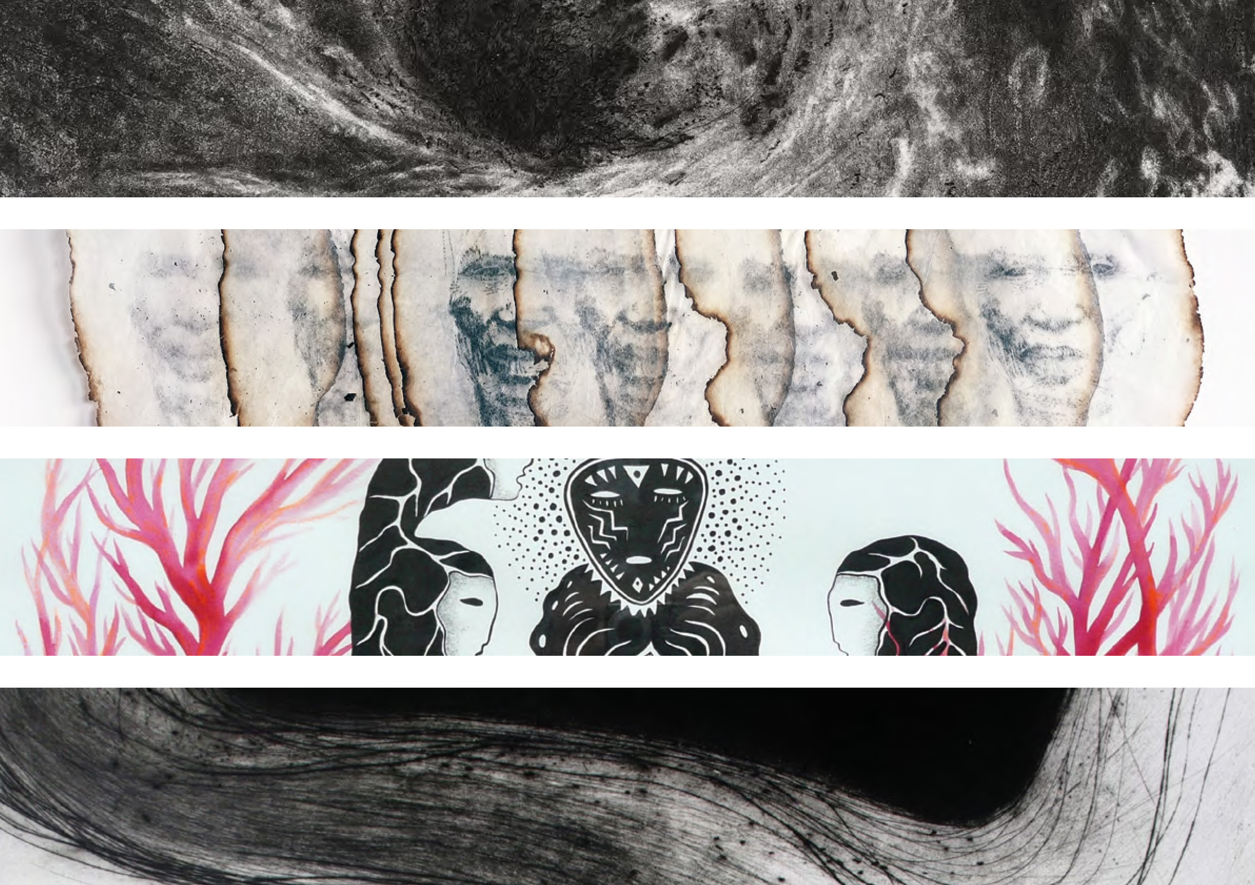 Des linogravures graphiques aux contrastes absolus se mêlent aux peintures de l'artiste liée au médium noir d'ivoire et aux plis.Dernièrement une nouvelle cosmogonie apparaît en couleur. Exposants Sylvianne Abrias Murat et Héléna...