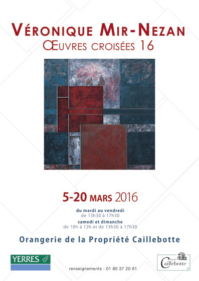 Véronique Mir Nezan présente son exposition personnelle « Œuvres Croisées 2016 » à l’Orangerie de la Propriété Caillebotte. L’artiste ne rentre pas dans les carcans des « styles « ou des « catégories...
