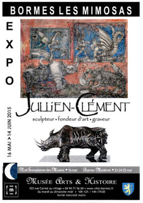 Exposition d'estampes et de sculptures de Jullien-Clément : un bestiaire sculpté, estampé, et autres figurines dans des décors à la facture surréaliste et onirique où les regards se croisent et s'interrogent. Symboles, humour et satyre...