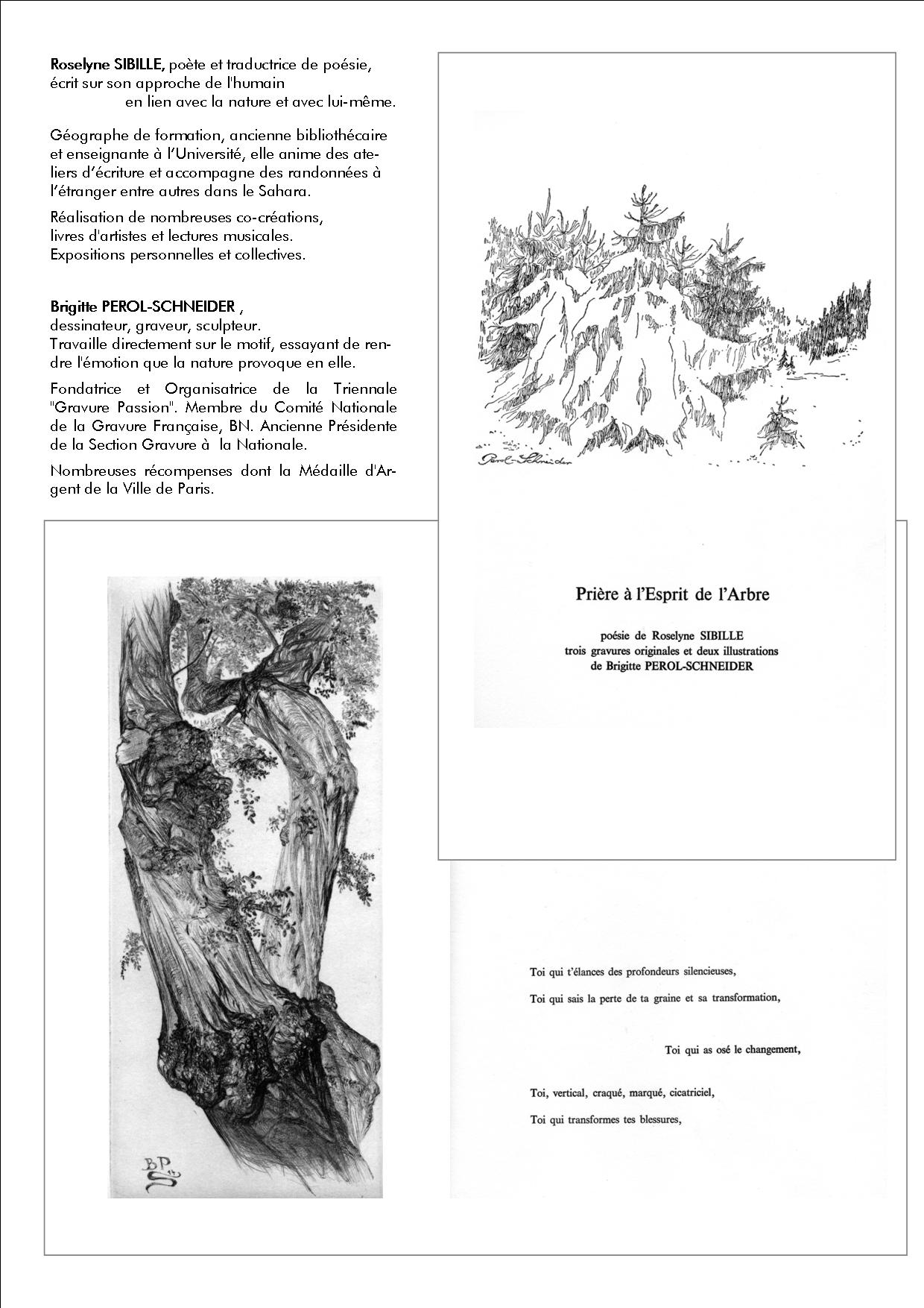 Brigitte Pérol-Schneider, médaille d’argent de la ville de Paris, expose ses plus belles gravuresdans le décor d’un atelier de taille-douce historique et présente le livre de bibliophilie « Prière à l’Esprit de l’Arbre...