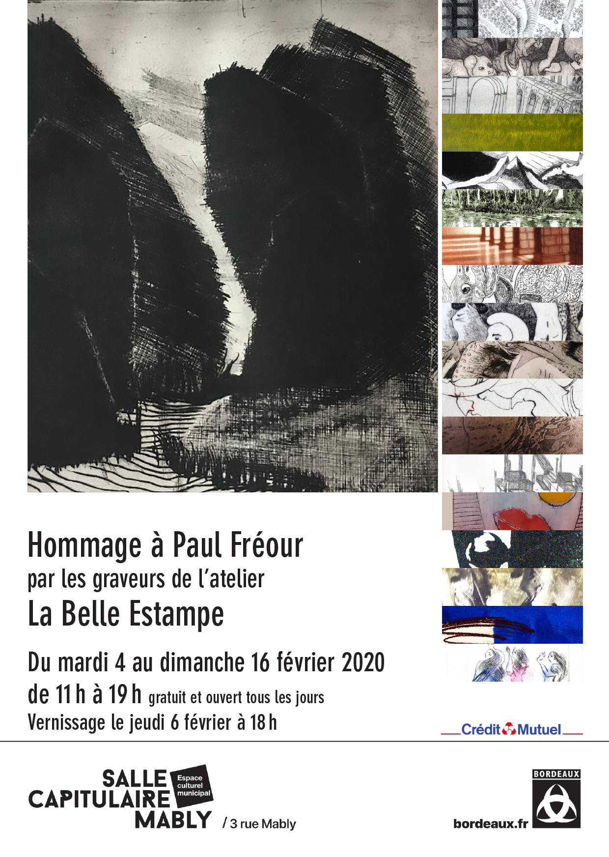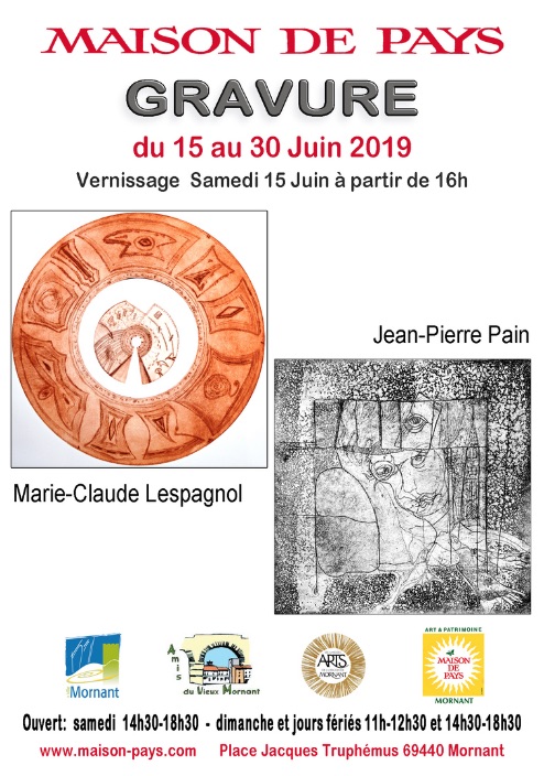 Exposition d'estampes et de sculptures. Démonstrations d'impression les jours d'ouverture à 17h sauf le 4 juin Projection d'un film sur l'estampe Exposants Sophie Domont