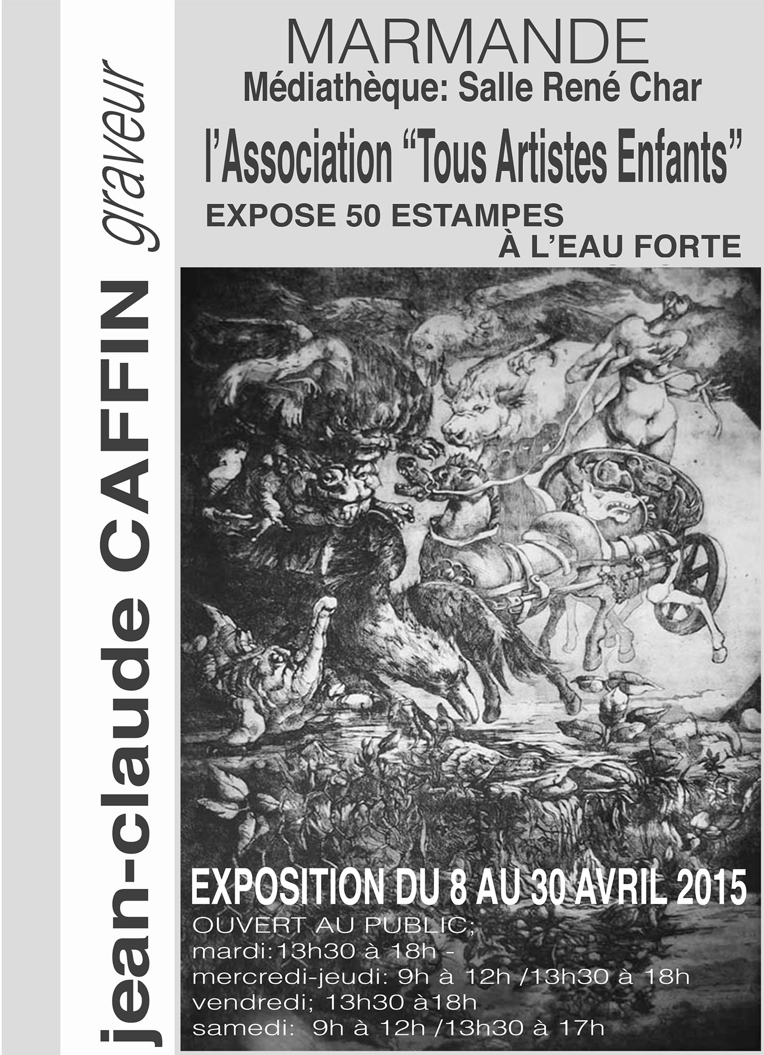 La médiathèque René Char de Marmande présente une exposition de Jean-Claude Caffin, avec 50 estampes à l'eau forte. Jean-Claude Caffin