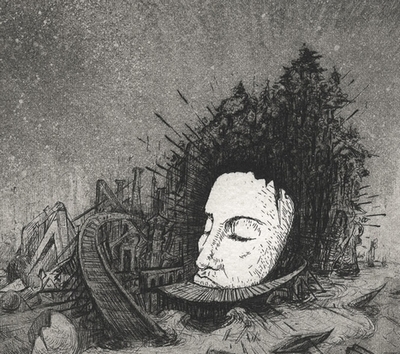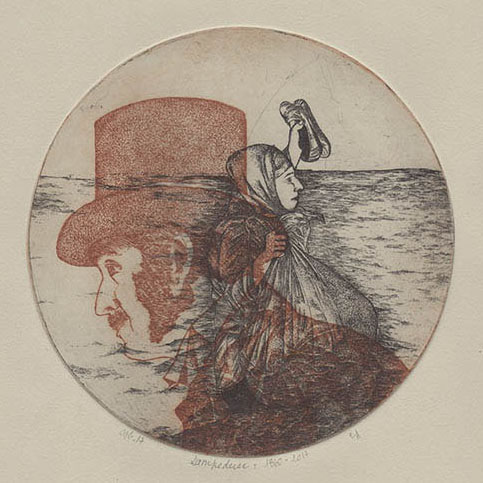 Gravures des exposants et hommage à Jacques Houplain (1920 - 2020) grand maître de l'eau-forte à l'imaginaire érudit et malicieux. Exposants Les exposants de Pointe et Burin et de l'Atelier de gravure de Chaville : Sofie ALDUY -...