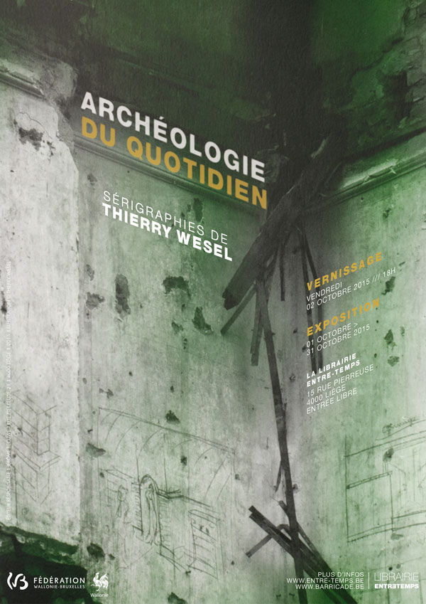 La librairie Entre-temps présente une exposition de sérigraphies de Thierry Wesel. "Cette nouvelle série est, sous l’apparente aridité de son propos, hypnotique et fascinante. Outre un traitement graphique délicat, elle fait naître...