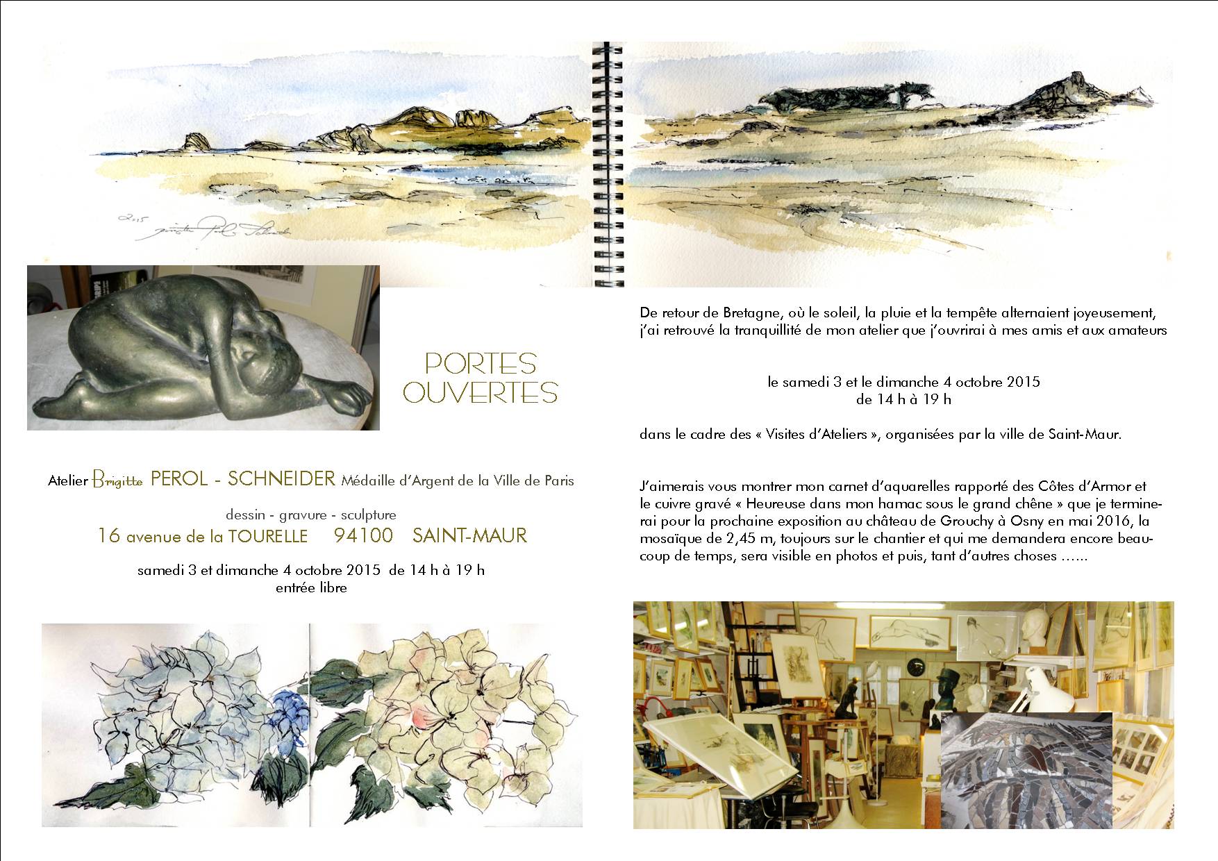 Exposition de gravures mais aussi de dessin, aquarelle et de sculpture. Exposants Brigitte Perol-Schneider