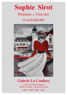 Exposition d'aquatintes avec rehaut d'encre rouge. Une cinquantaine de gravures encadrées sont présentées. Les thèmes sont essentiellement Belle-Ile, la mer et les matelots... Exposante Sophie Sirot