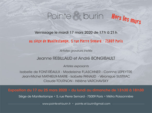 Désirant toujours éditer 2 gravures par an à l'intention de ses fidèles souscripteurs comme elle le fait depuis son origine, l'association Pointe & Burin présentera ses souscriptions ainsi que les travaux récents de ses membres actifs, lors...