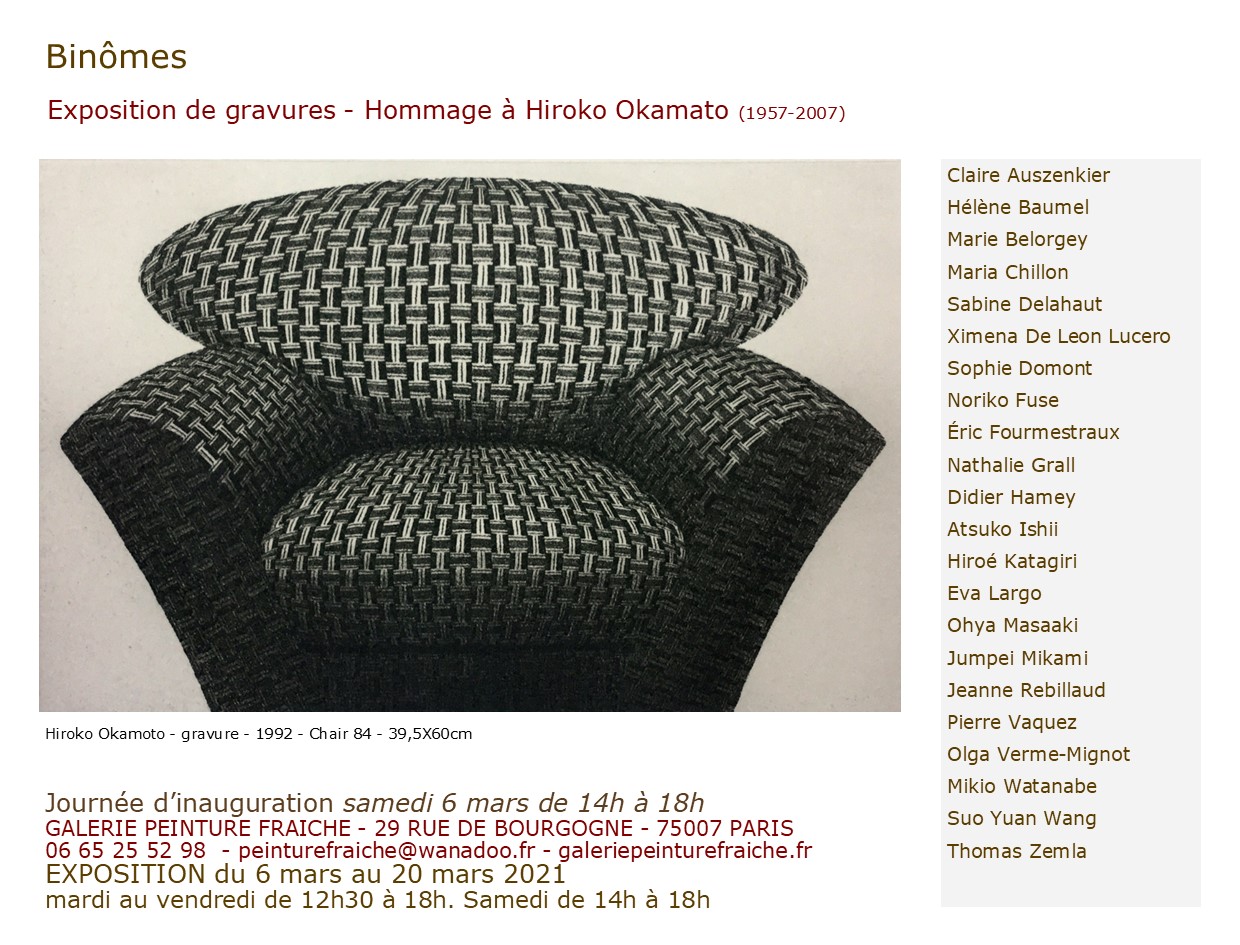 « Binômes » est une exposition réunissant une vingtaine d’artistes graveurs autour de l’oeuvre d’Hiroko OKAMOTO (1957-2007). La grande variété de l’estampe contemporaine est ainsi rendue visible grâce à la participation...