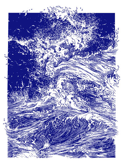 Exposition personnelle d'Éric Durant. Linogravures monochromes et polychromes, sur le thème "Brisants, vagues et déferlantes". Exposant Éric Durant