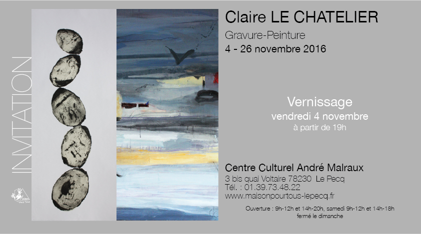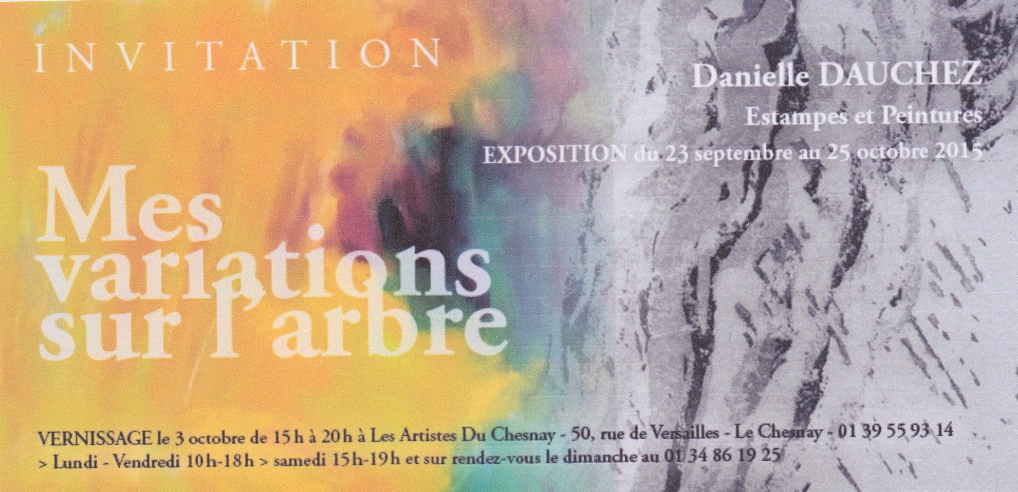 Trois artistes sont mis à l'honneur par l'Association des Artistes du Chesnay : Danielle Dauchez présente ses estampes, accompagnée des peintures de Yann Martin-Lavigne et des sculptures de Marie-François Rivet. L'ensemble exposé par Danielle...