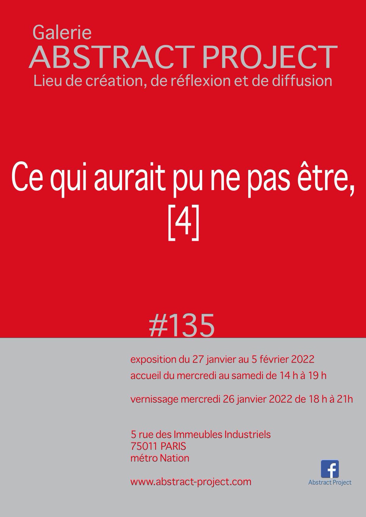 Du 27 janvier au 5 février Pascale Simonet participe à l'exposition "Ce qui aurait pu ne pas être" à la Galerie Abstract Project avec un travail sur papier "Inception". Tout travail d’artiste repose sur des pratiques et des postulats...