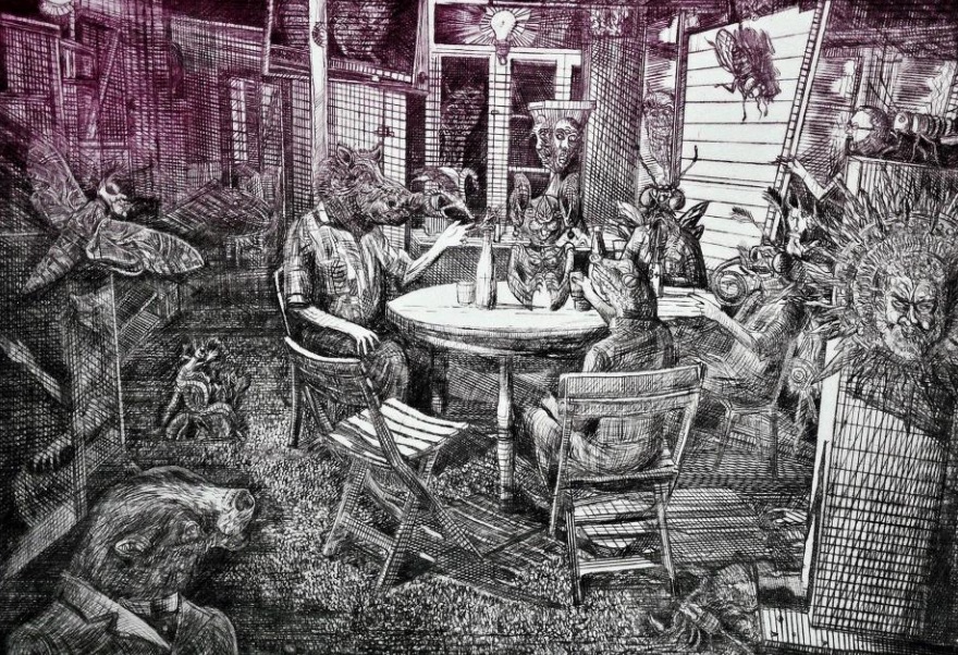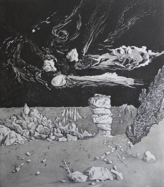Exposition de gravures de Eve Luquet : pointes-sèches sur cuivre, imprimées sur papier japon en 2015 et 2016. Exposants Eve Luquet