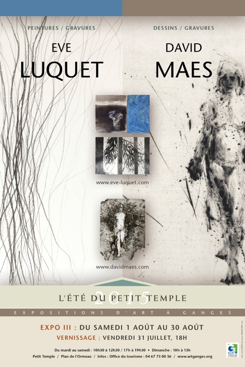 L’association "L’Été du Petit Temple", à Ganges, présente une exposition en duo de ces 2 artistes : Ève Luquet avec des diptyques mêlant gravure, encre de chine et peinture. David Maes qui expose un ensemble des gravures...