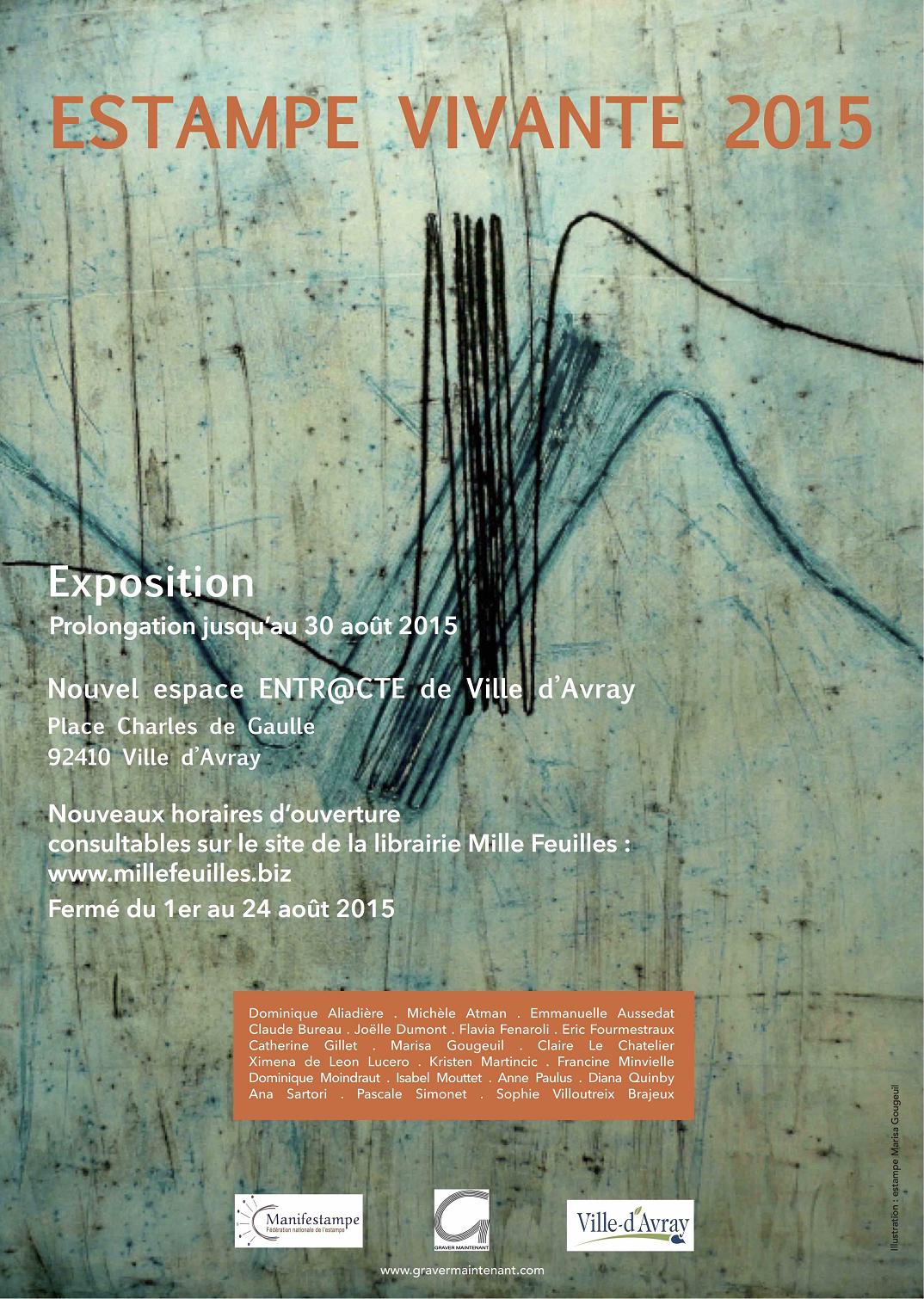 Estampe vivante 2015, exposition inaugurale de l'Entra@cte, Ville d'Avray (92) : 19+ artistes de Graver Maintenant et invités. Expo du 17 juin au 30 août 2015 > télécharger le dossier de presse